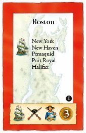 - Many of the cards have multiple ways in which they can be used. The Boston card, for example, can make money, or let you merchant, or provide a military strength, or give you a boat for coastal travel, or lets you connect to New York, New Haven, Pemaquid, Port Royal, and Halifax. It can also be used to upgrade a settlement to a city. It can be used to provide settlers to initially colonize a settlement location. Finally it can block incoming raids at Boston. That's a lot of versatility for one card!