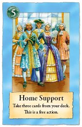 Home support can be very useful in a small deck as well if you're lucky enough to keep drawing it early in the shuffle. Especially for the British who will often have a deck capable of a 6 gold merchant action if they draw up to 7 cards! Burning through your deck faster with home support can also let you redraw your best card more frequently than you 'should' be able to. (Typically if I'm doing this it's so I can keep cycling my rangers card on ambushes/raids/blocks.)